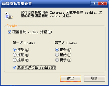 点击按钮"确定"(OK),关闭cookie设置窗口