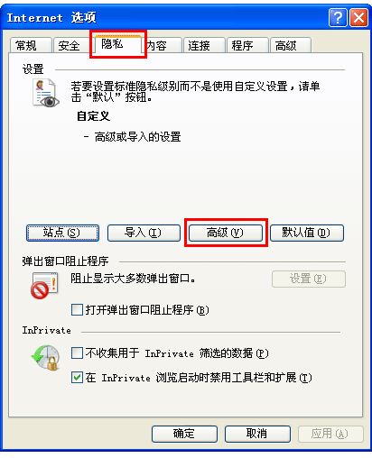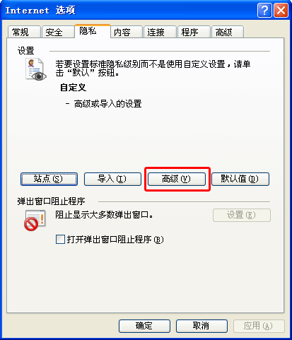 在"隐私"的设置里,点击第三个按钮"高级"(Advanced)